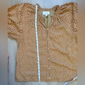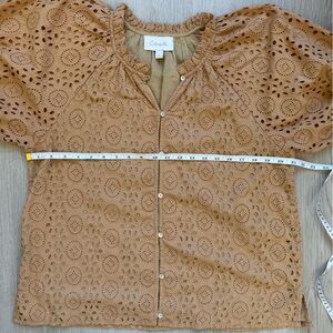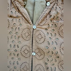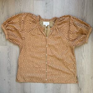 Cleobella Kate Blouse Wheat Tan Eyelet Button-Up Blouse Small Organic Cotton