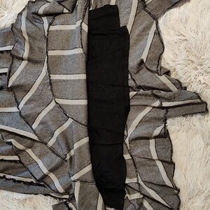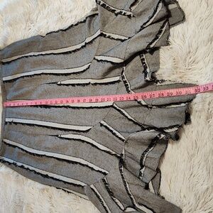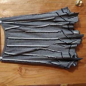 Acorn Lagenlook Twill Skirt Gray Black White Handkerchief Hem Fringed Boho 14