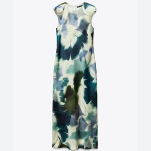 Zara NWT Printed Satin Midi Dress - Size Small