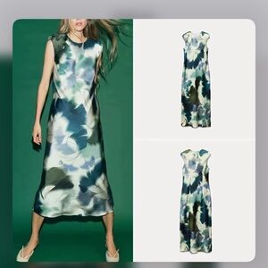 Zara NWT BEAUTIFUL Satin Printed Midi Dress