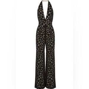 CUSHNIE Halter Neck Polka Dot Jumpsuit in black size 8