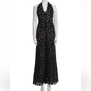 Cushnie et Ochs dot-print stretch-woven jumpsuit. Plunging V'd halter neckline, wide leg, lined, floor length