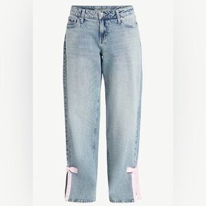 NWT Baggy wide leg Light Stone Wash Women's Jeans with Pink Bow