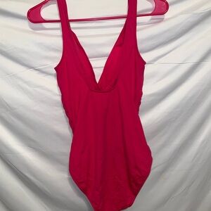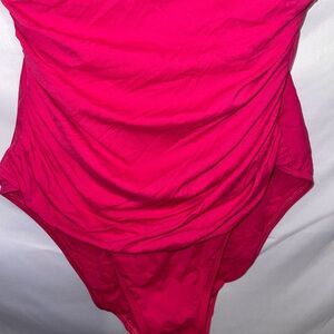 Stylish one-piece swimwear in vibrant pink. Offers a chic and comfortable fit.