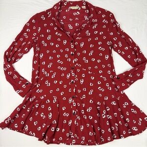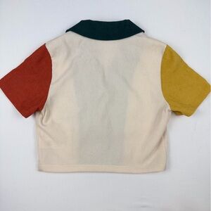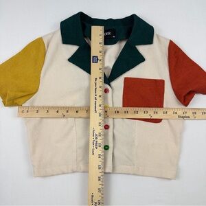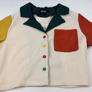Cider Retro Colorblock Short Sleeve Button Up Crop Blouse Patchwork XS Like New