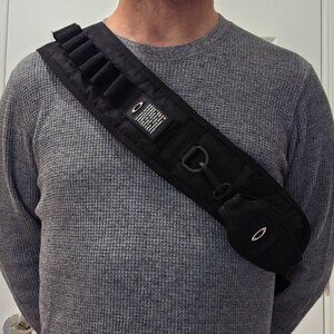 *** Cross chest strap has lots of carabineer hooks for attaching accessories.