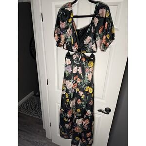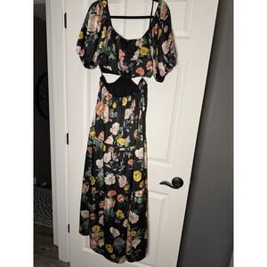 Vici Cambria Satin Floral Puff Sleeve Maxi Dress W Cut Out Sides Xl Black