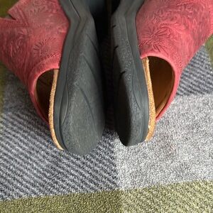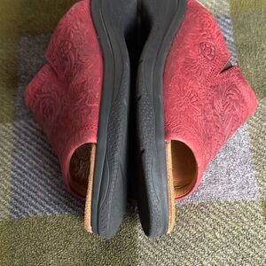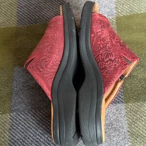 Ariat Bridgeport Red/Burnt Red Tooled Floral Leather Slide Sandals Size 9M(B)