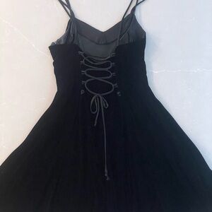 Vintage Velvet Le Chateau Black Lace-Up Mini Flate Dress Like New. 90s high quality.