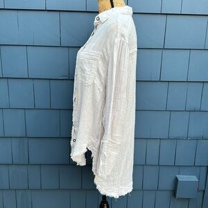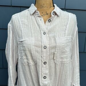 We the Free People XS oversized blouse cotton button up cream stone linen