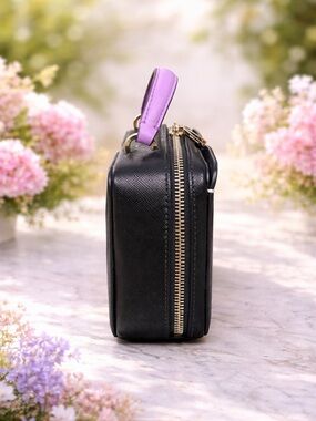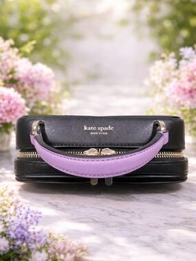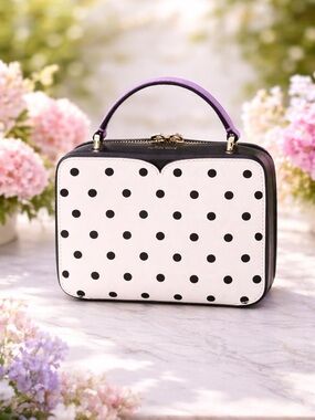 Chic and playful Kate Spade New York mini satchel featuring a timeless black & white polka dot design with gorgeous lavender accents 💜