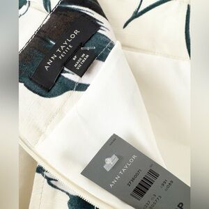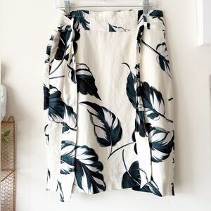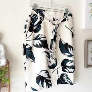 Ann Taylor Ivory Teal Leaves Linen Blend Tie Waist Pencil Skirt Size 8 Petite