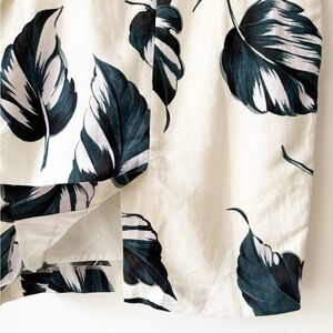Topped with a pleated tie waist, this botanical pencil is effortlessly on-point. Belt loops. Self tie belt. Front off-seam pockets. Hidden back zipper with hook-and-eye closure. Back vent. Lined. Shell: 54% Linen, 45% Viscose, Lining: 100% Polyester Machine Washable
