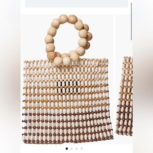 This slouchy bag made from wooded beads with bracelet-style handles is the perfect standout accessory to complement your vacay looks.