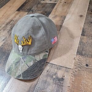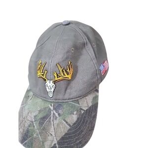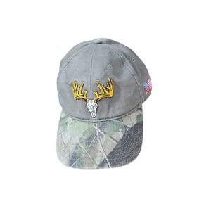 Keywords: Mens Baseball Cap, Deer Skull Hat, Camo Brim Cap, Big Game Trophy Club, American Flag Hat, Hunting Cap, Outdoor Cap, Embroidered Hat, Patriotic Cap, Mens Outdoor Apparel, Deer Antler Cap, Fishing Hat, Hunter Hat, Wildlife Cap, Casual Hat