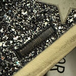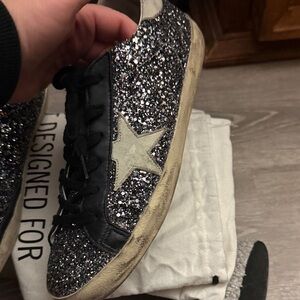 Golden Goose Deluxe Brand Super-Star Sneakers Black Silver Glitter Size 10