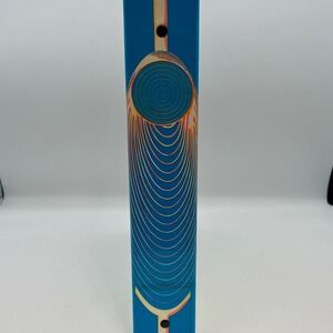 Keywords: geometric, art deco box, abstract design, blue green container, decorative storage, vintage binder, mod