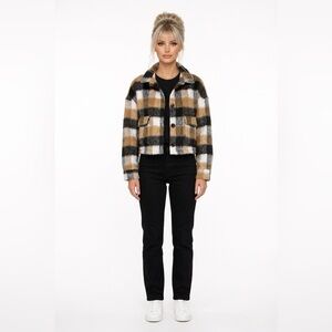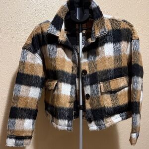 Fuzzy crop Plaid Jacket with Button Closure by Kate & Mallory women’s large