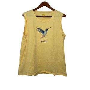 Life Is Good Women's XL Yellow Hummingbird Logo Tank Top Sleeveless Cotton