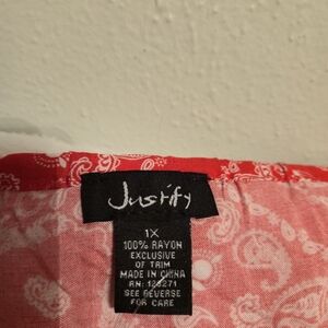 JUSTIFY Bandana V Neck Cami Tank Faux Wrap Button Front Top Red Paisley Size 1X