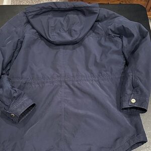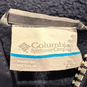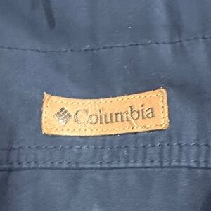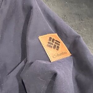 Dark blue utility jacket by Columbia. Includes a warm hood and front zipper. Perfect for outdoor activities.