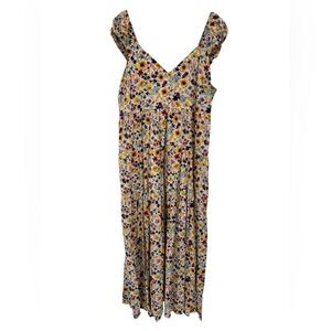 PACT Organic Cotton Fit and Flare Midi Dress in Navy White Floral Print NEW - L