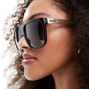 Quay No Curfew Oversized Shield Black Polarized Sunglasses NEW with Hard Case