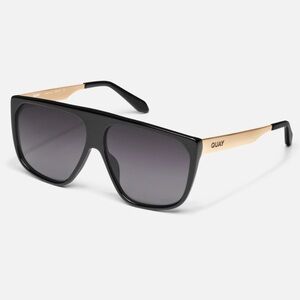 Quay | No Curfew Oversized Shield Black Polarized Sunglasses NEW. Black Frame / Smoke Polarized Lens.