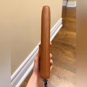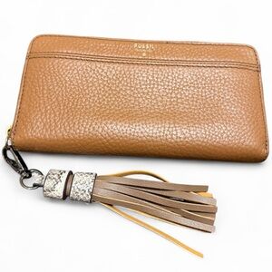 FOSSIL Pebbled Leather Large Zip Around Brown Wallet With Tassel Women’s
