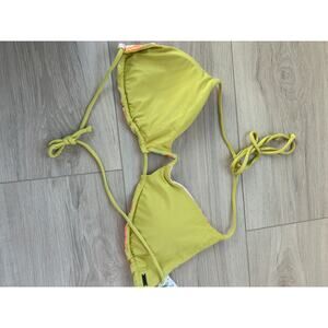 Get some sun or take a dip. This halter bikini top has a front cutout detail and ties at the back. The 2 in 1 design is fully reversible.