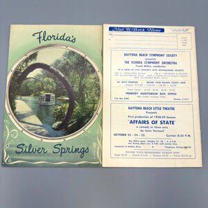These vintage 1958 Florida tourist booklets feature the charm of Silver Springs and Daytona Beach. They include historical insights, colorful imagery, and local attractions. A nostalgic glimpse into mid-century Florida travel.