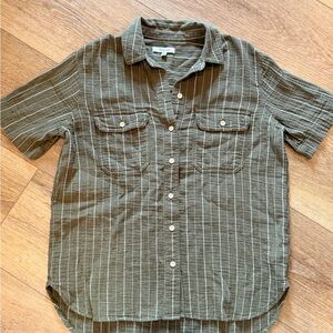 Soft plaid button-down with chest pockets. Button-front closure and cuffs. Lightweight woven fabric for layering. Timeless casual style.