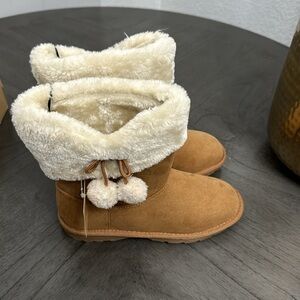 Thereabouts little and big girl's Aubree boots are perfect for her to style in chilly winter weather. Made from suede-like fabric, these faux-shearling lined boots have memory foam insoles, complete with a side bow with pom-pom tips. Style this pull-on boot with anything in her wardrobe.