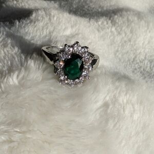 • Oval emerald green center stone (likely simulated)