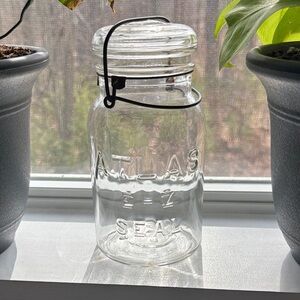 Vintage🔸Atlas E-Z Seal Clear Glass Mason Jar Wire Slide open Lid