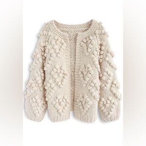 Chicwish Womens soft heart shaped balls Thick open Cardigan Sweater ivory cream