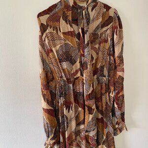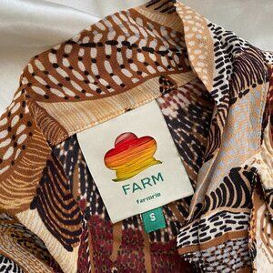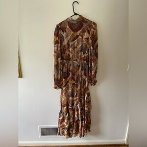 Farm Rio Brown Dotted Macaws Long Sleeve Maxi Ruffle Boho Dress Small