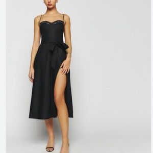 NEW Reformation Kieryn Linen Midi Dress - Black