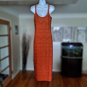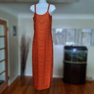 Shape FX Women’s Size 8 Orange Textured Maxi Dress w/ Side Slit–Sleek & Stylish