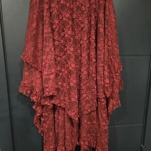Elegant black lace asymmetric wrap skirt with layered scalloped hem. Lightweight and breathable for effortless styling. Pairs easily with fitted tops for day-to-night looks.