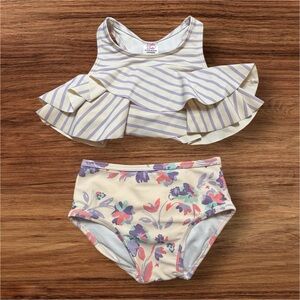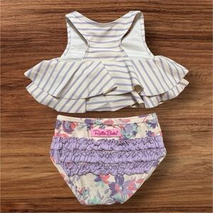 Ruffle Butts Striped and Floral Kids Bikini - Purple and White Size 18-24 Months