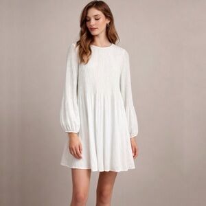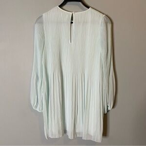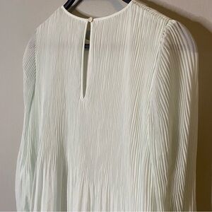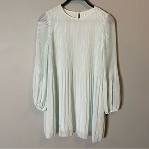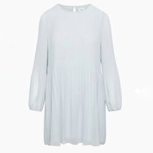 Get swept away in this dreamy Wilfred signature. This is a long sleeve mini dress with sheer sleeves and accordion pleats throughout. It’s made with Fete Chiffon — lightweight, semi sheer fabric with an ethereal drape