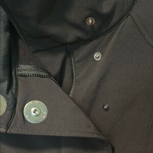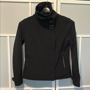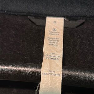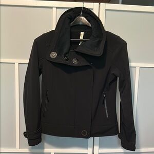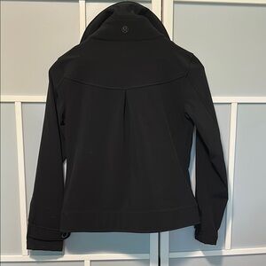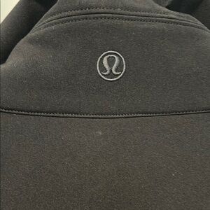 This black bomber jacket from Lululemon Athletica features a high collar and a fitted silhouette, offering a modern and sophisticated look. Its structured design and minimal embellishments make it a versatile addition to any wardrobe.