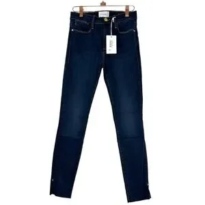Frame Denim Revolve Le High Raw Edge Hem Ankle Slit Rivet Skinny Jeans Fonda