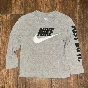 Nike Toddler Boys 2T Gray Just Do It Long Sleeve Shirt Logo Tee