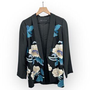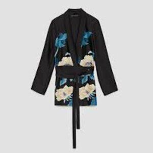 Zara Floral Printed Black Tie-Waist Kimono Blazer Jacket Wrap Belt