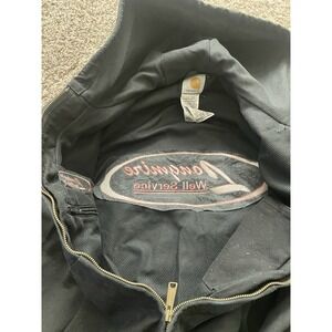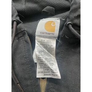 Carhartt Canvas Hooded Coat Logo Black Jacket Lined L J25 DKB. Condition is Pre-owned - Fair. Shipped with USPS Ground Advantage.