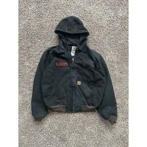 Carhartt Canvas Hooded Coat Logo Black Jacket Lined L J25 DKB