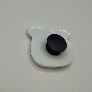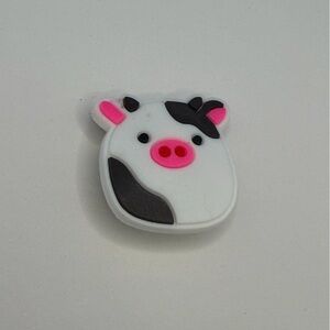 Adorable animal charm featuring a white base with pink snout and ear accents. Black/brown cow-style spots and facial details. Solid, playful accessory. Great for bags or crafts.