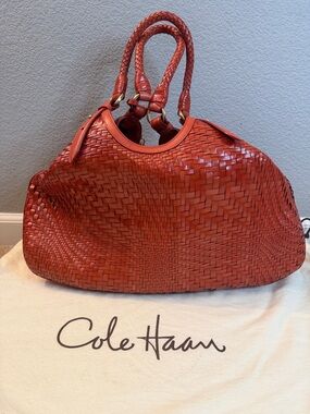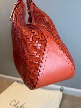 Cole Haan Genevieve Triangle Tote Red Woven Leather Shoulder Bag with Dustbag